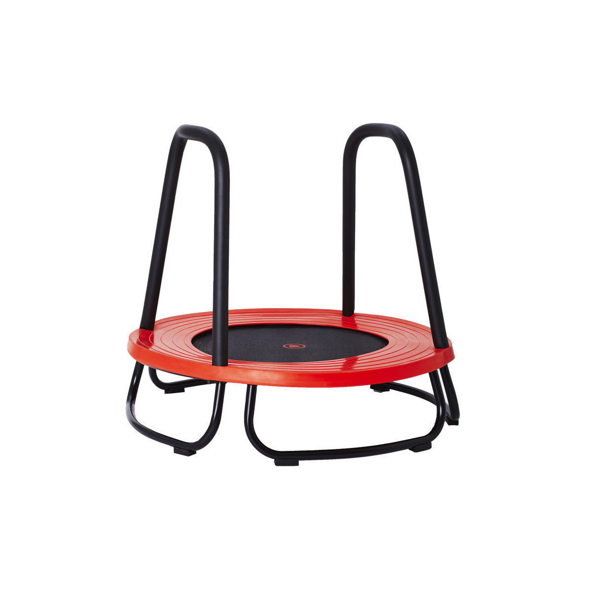 The Baby Trampoline is beautifully designed to offer simplicity and safety in a solid construction. The canvas, just 7 inches above the floor, is tensioned such that even small children will experience a springing effect, which they would be too light to feel on ordinary trampolines. The rubber cover yields protection against the metal frame, and the supporting handles are covered with foam to protect face and teeth. Measures 29.13" x 29.13" with a 7.09" high platform and handles that measure 25.59" from the floor. Weight Capacity: 44.1lb.
