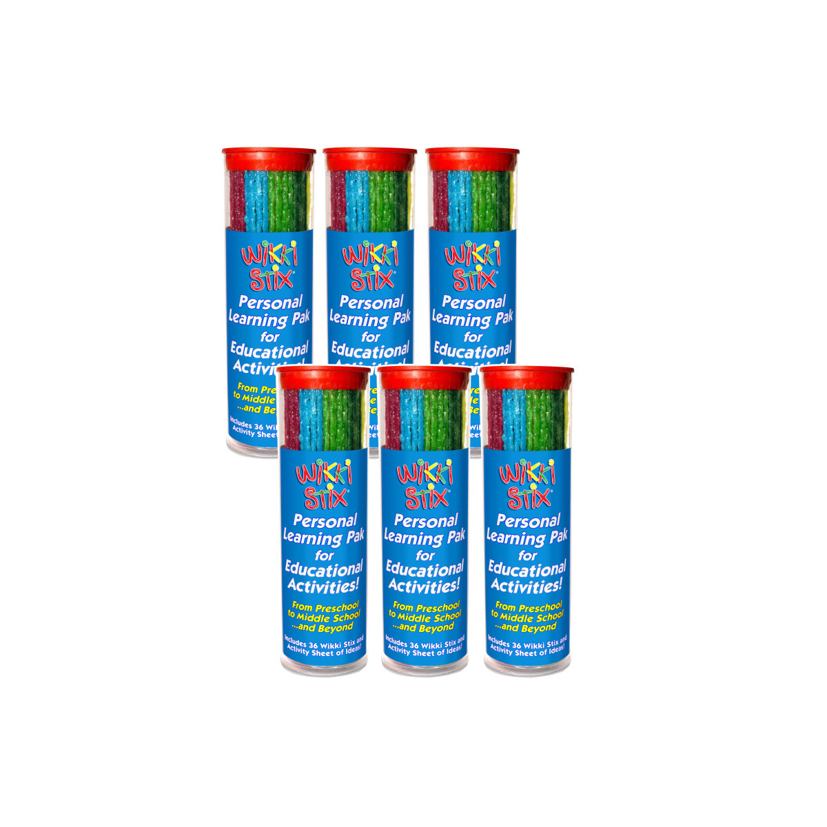 Each Personal Learning Pak includes 36 six-inch Wikki Stix in assorted colors, packaged in small tube for easy storage after use. Includes two-sided colorful flyer showing educational ideas across grades and disciplines. Designed for each students personal use! Stick to paper, posterboard, and most surfaces with fingertip pressure. Ideal for challenging STEM lessons. Sold as 6 packs for a total of 216 Wikki Stix.