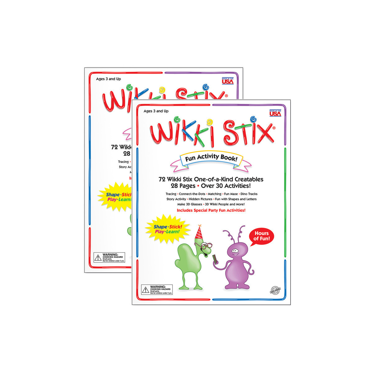 Activity Book includes 72 Wikki Stix to make fun activities mistake-free! Easy to use Wikki Stix provide hands-on engagement for matching, counting, shapes, letters, numbers in sequence and simple free-form art. Each book includes 28 pages. Sold as 2 books.