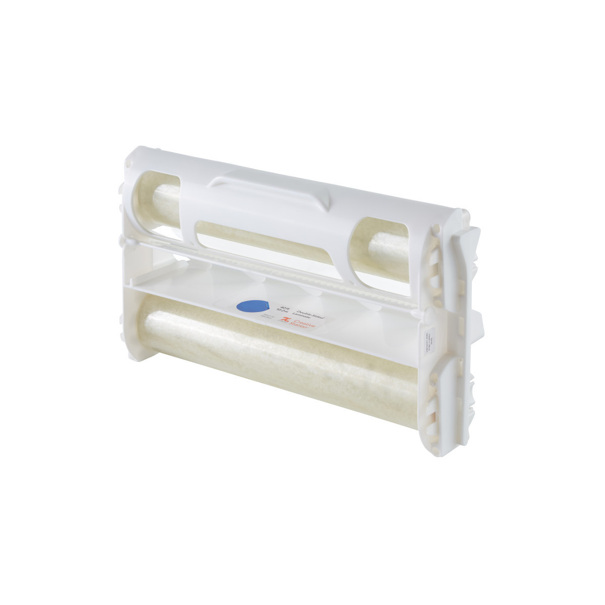 Replacement laminate cartridge for use with the 9" Creative Station Home. Roll measures 9in x 40t. Quick change cartridge, just open the machine, remove used cartridge and guide new cartridge in using the inside tracks. Apply laminate to both sides to preserve documents. Cold lamination allows you to trim right up to or through items without any peeling or lifting. Discard after all material has been used. Non-toxic, acid-free, photo safe laminate.