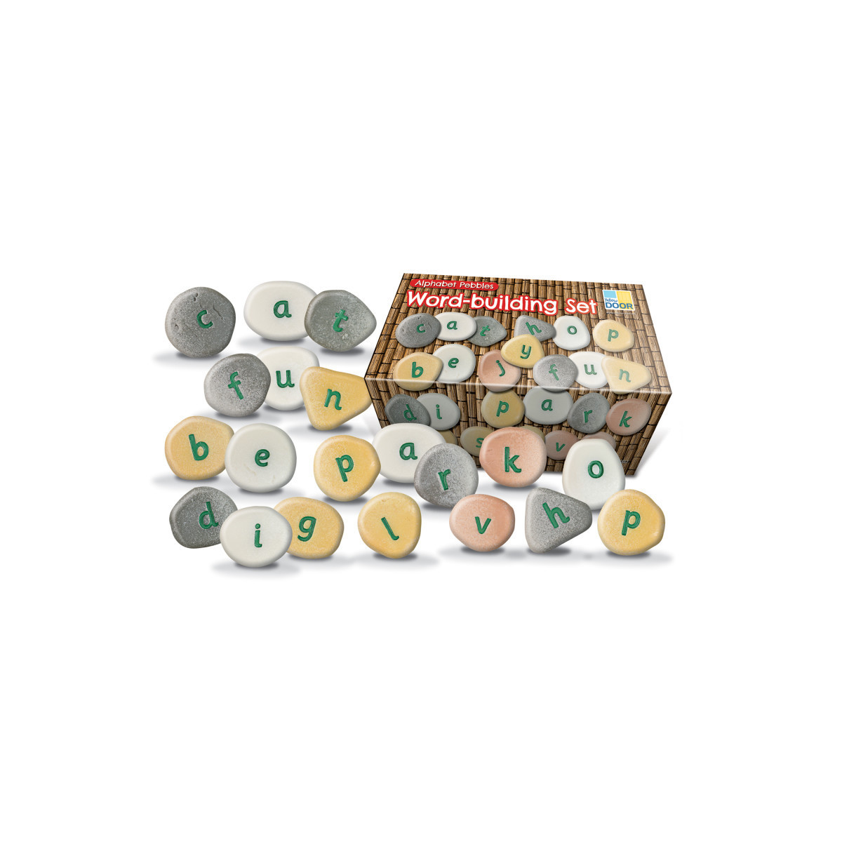 Invite children to explore word-building in a playful way with these tactile pebbles. Each pebble is engraved with a letter of the alphabet and the set includes the right combination of letters for children to make familiar words. Durable for use in sand, water and outdoors, each pebble measures about 1.5 inches. Each set includes three of each vowel and two of b, c, d, f, g, h, l, m, n, p, r, s, t, y and one of j, k, q, v, w, x, z. Age 3+.