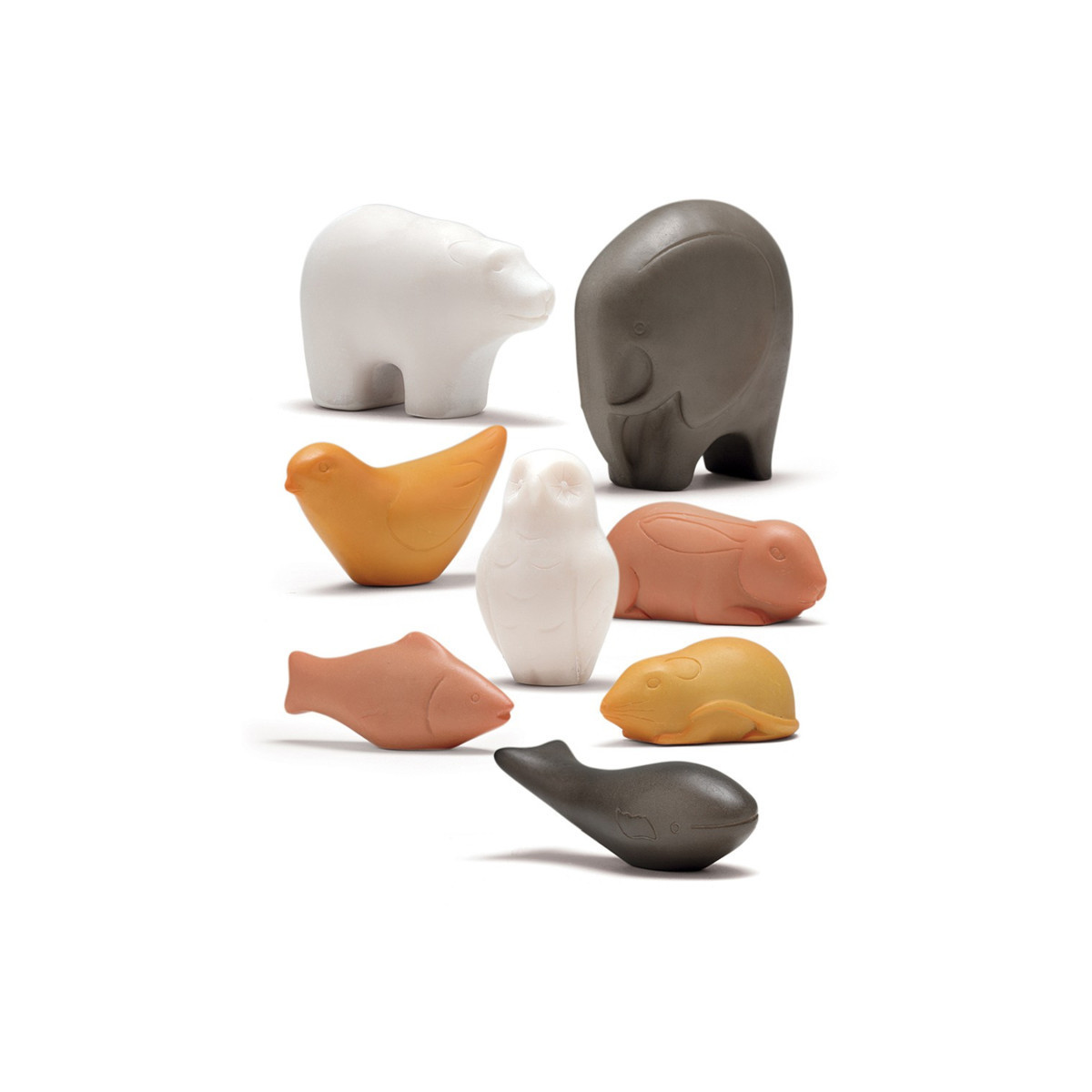 Ideal for sensory play, these beautifully sculpted animals will charm your youngest learners. The set consists of eight tactile figures: a bear, an owl, a bird, a whale, a fish, an elephant, a mouse and a rabbit (1—3'' high). The animals can be sorted and matched by different criteria, including color, habitat and characteristics, promoting language and discussion. Each piece is crafted from our unique stone mix and can be used outside. Why not build habitats for the animals: a nest for the bird, a river for the fish, an icy ocean for the bear.