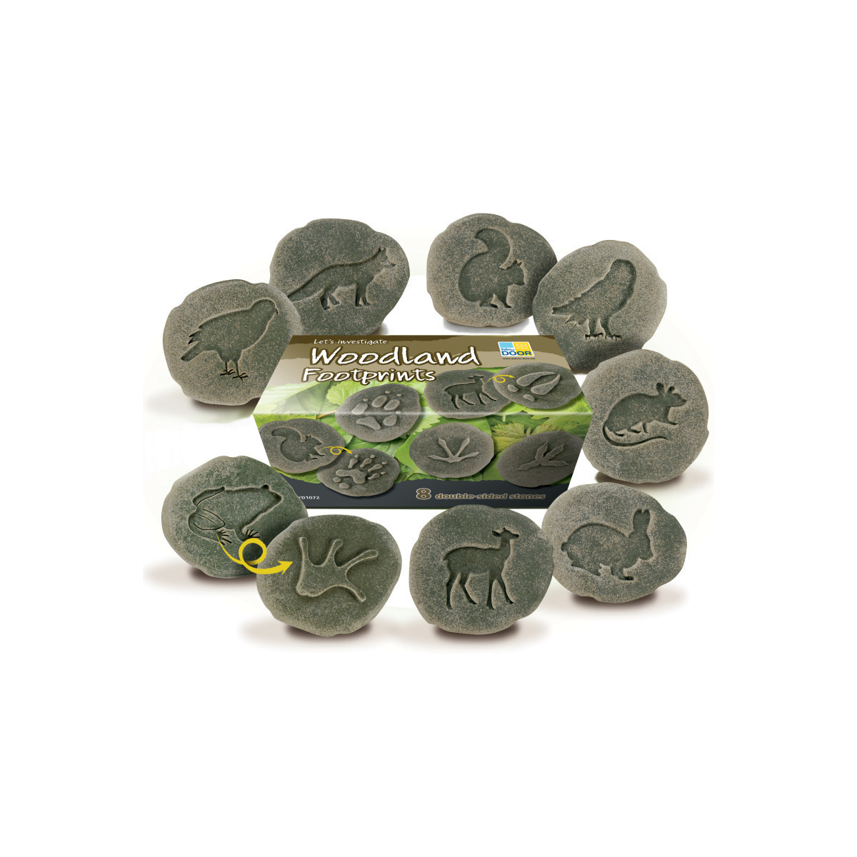 This set of engaging woodland footprints is a great way for children to start their woodland explorations! Each set includes a footprint for a fox, squirrel, rabbit, frog, deer, hawk, owl and mouse. The footprint stones can be sorted by categories such as feathers, claws, diet. Children can record their findings by taking rubbings, making impressions in play clay and investigating what else they can find out about each animal. When the work is done, the children can give the footprints a good clean with soap and water before a new woodland adventure. The footprints are made from a unique stone mix and are robust enough to be used throughout an early childhood environment, both inside and outdoors. Contains eight double-sided stones (3'' approx.).