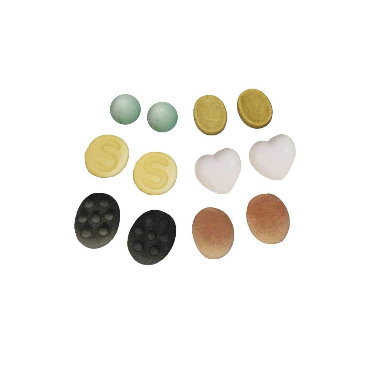 These tactile stones have been designed to soothe, calm and help children focus. Offering an appealing range of shapes, textures and natural colors, the set includes 12 stones: 2 each of 6 designs measuring between 2-3". Ages 3 years and up.