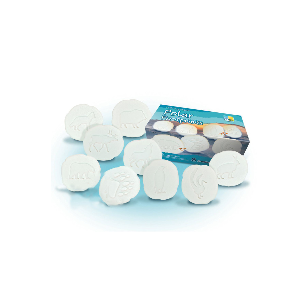 These chilly footprints will encourage a fascination for the special wildlife that lives in our frozen, polar landscapes. Including animals from both the northern Arctic and the southern Antarctic environments, they are perfect to nurture an understanding of our fragile natural world and a desire to protect it. Each stone shows a footprint on one side and its owner on the other. Made from a unique stone mix, the stones are durable for use inside and outdoors in the cold! Contains eight double-sided stones - Polar Bear, Caribou, Wolf, Musk Ox, Arctic Fox, Arctic Hare, Albatross and Penguin. Size approximately 3" x 2 1/2". Ages 3 years and up.