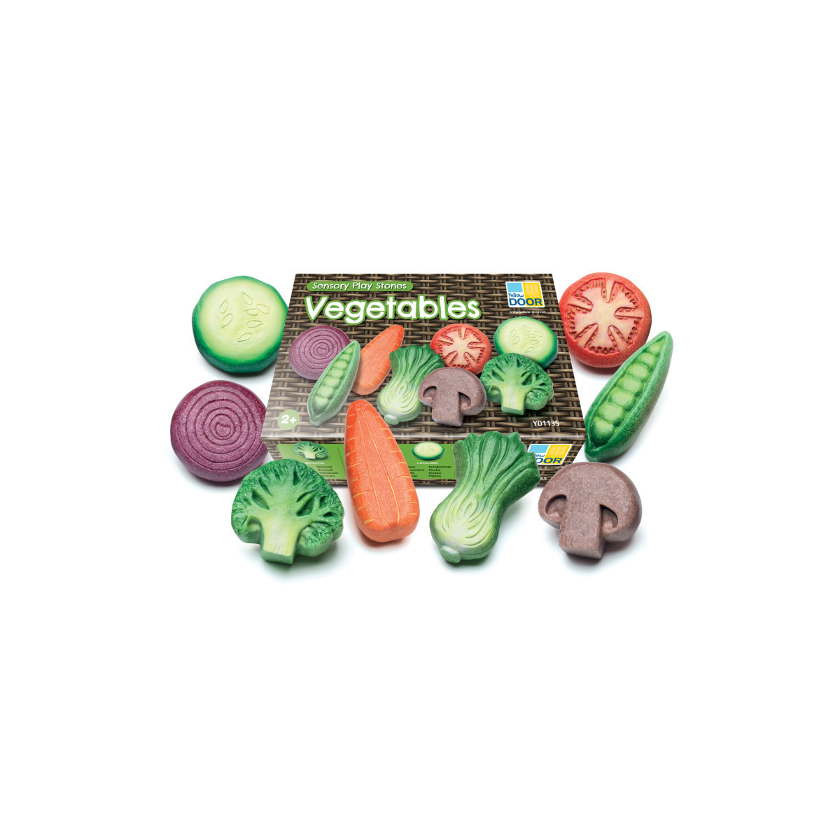 These sturdy vegetable stones offer the perfect ingredients for creative cookery in the mud kitchen, or for inspired role play (indoors or out)! Boiled, roasted, fried or steamed, the vegetables can be used to make all sorts of dishes: soups, stews, salads or stir fries. As sliced vegetables, children can see how the beautiful sculptures compare to the real thing. Set includes eight vegetables: tomato, pak choi, onion, peas, carrot, mushroom, cucumber and broccoli. Measures 2-3". Ages 2 years and up.