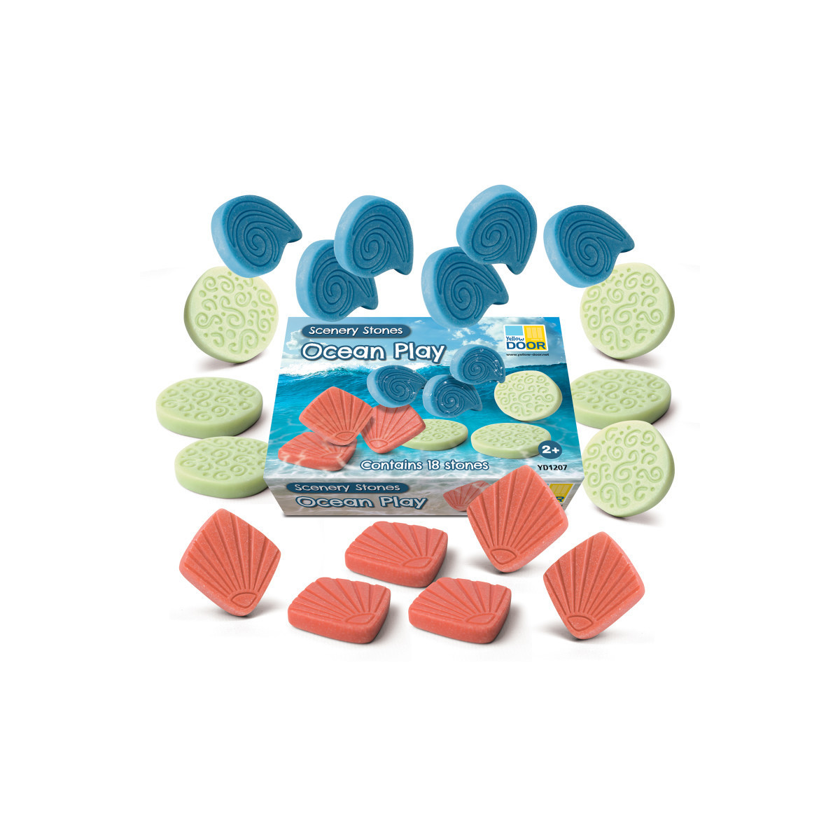 Watery habitats filled with swirling waves, beautiful shells, and fascinating corals will immerse children into imaginary underwater worlds that will inspire play, promote creativity, and enhance language development. Each sensory stone is engraved on one side and smooth on the other to encourage open-ended small world play.