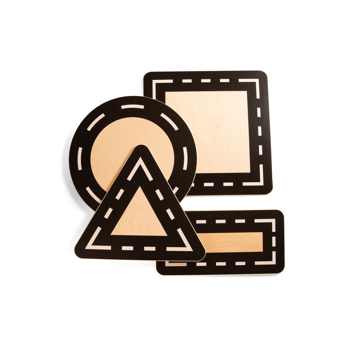 - These four shapes are beautifully hand-made from wood.