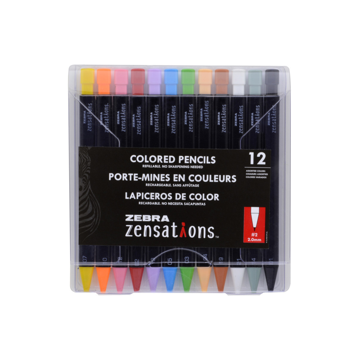 Zensations Refillable Mechanical Colored Pencils provide smooth, rich, vibrant colors that blend easily for shading and color mixtures. With a triangular barrel that is easy to hold, it provides excellent control while coloring or sketching. The 2.0mm lead is durable, long lasting and completely refillable! Each pack includes 12 mechanical colored pencils.