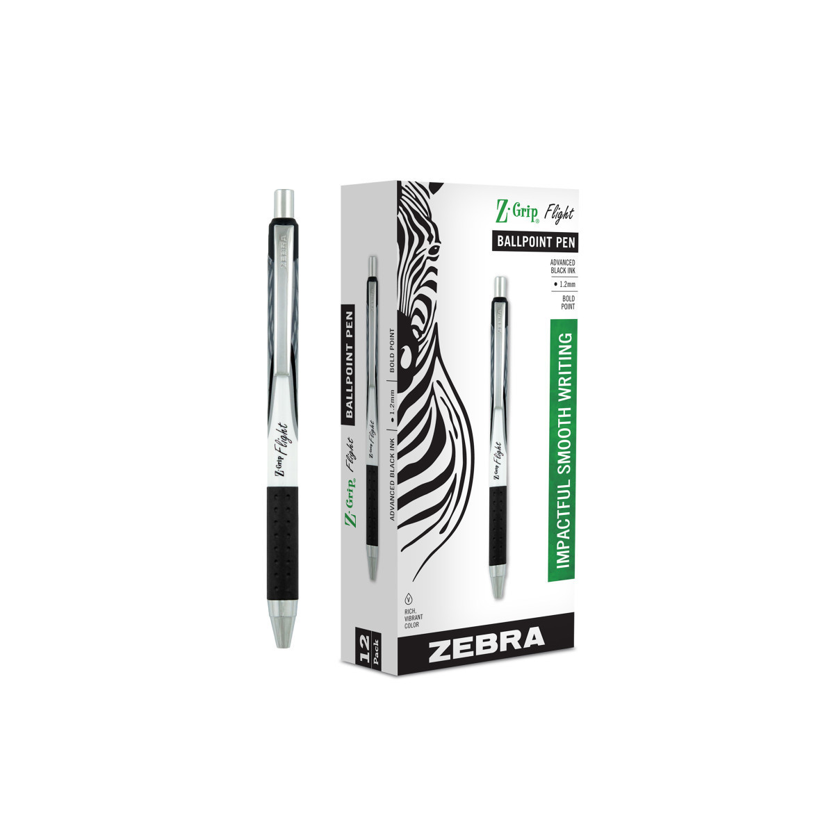 Zebra Pen's Z-Grip Flight Retractable Ballpoint Pen gives you the smoothness of a gel but dry time of a ballpoint. The low viscosity ink translates into a smooth writing experience. Nurses, teachers, sales professionals and those who write heavy will enjoy the perfect amount of bold with the 1.2mm point tip. The perfect entry level pen, Z-Grip Flight combines style, performance and value.