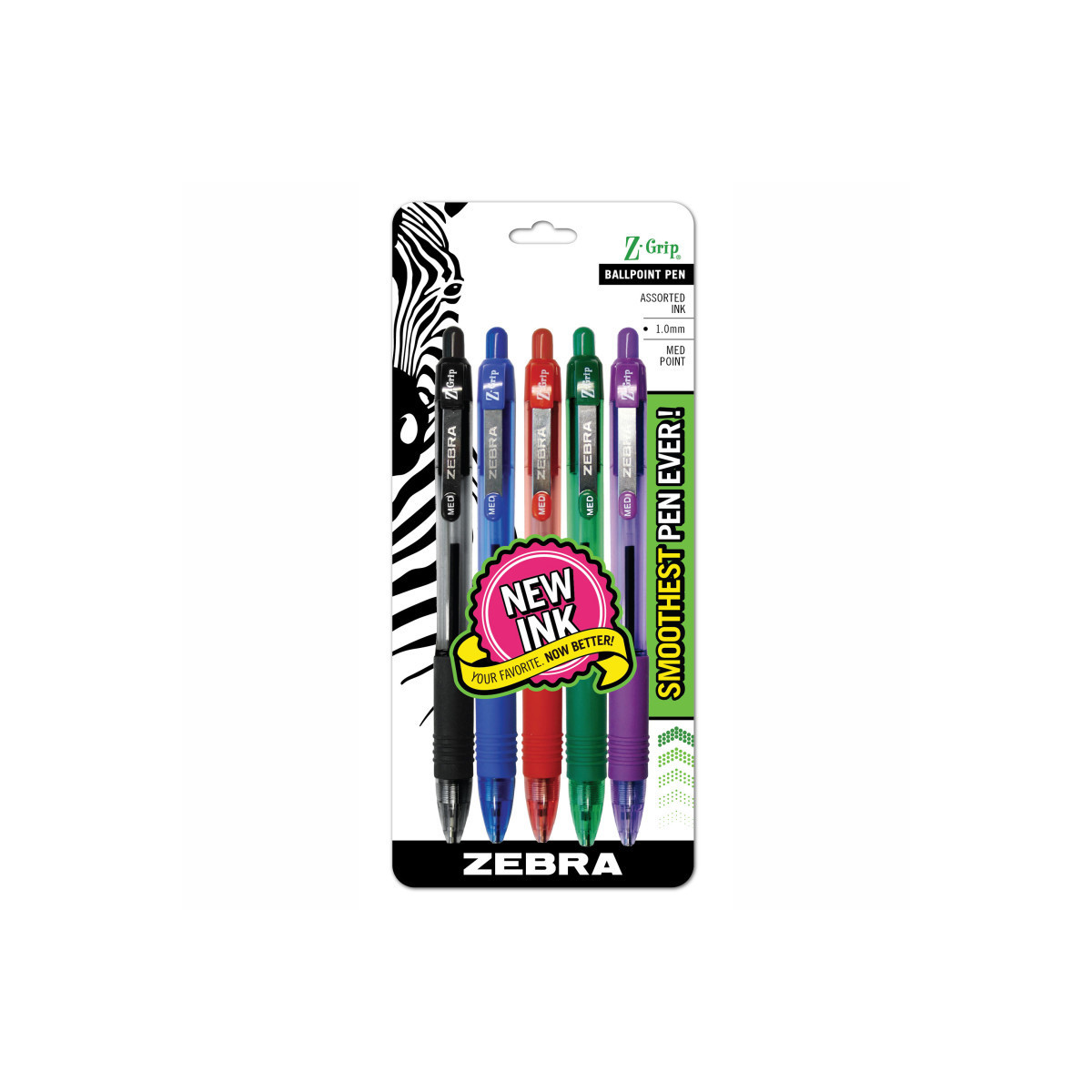 Grip color corresponds to ink color. Each pack includes 5 pens.