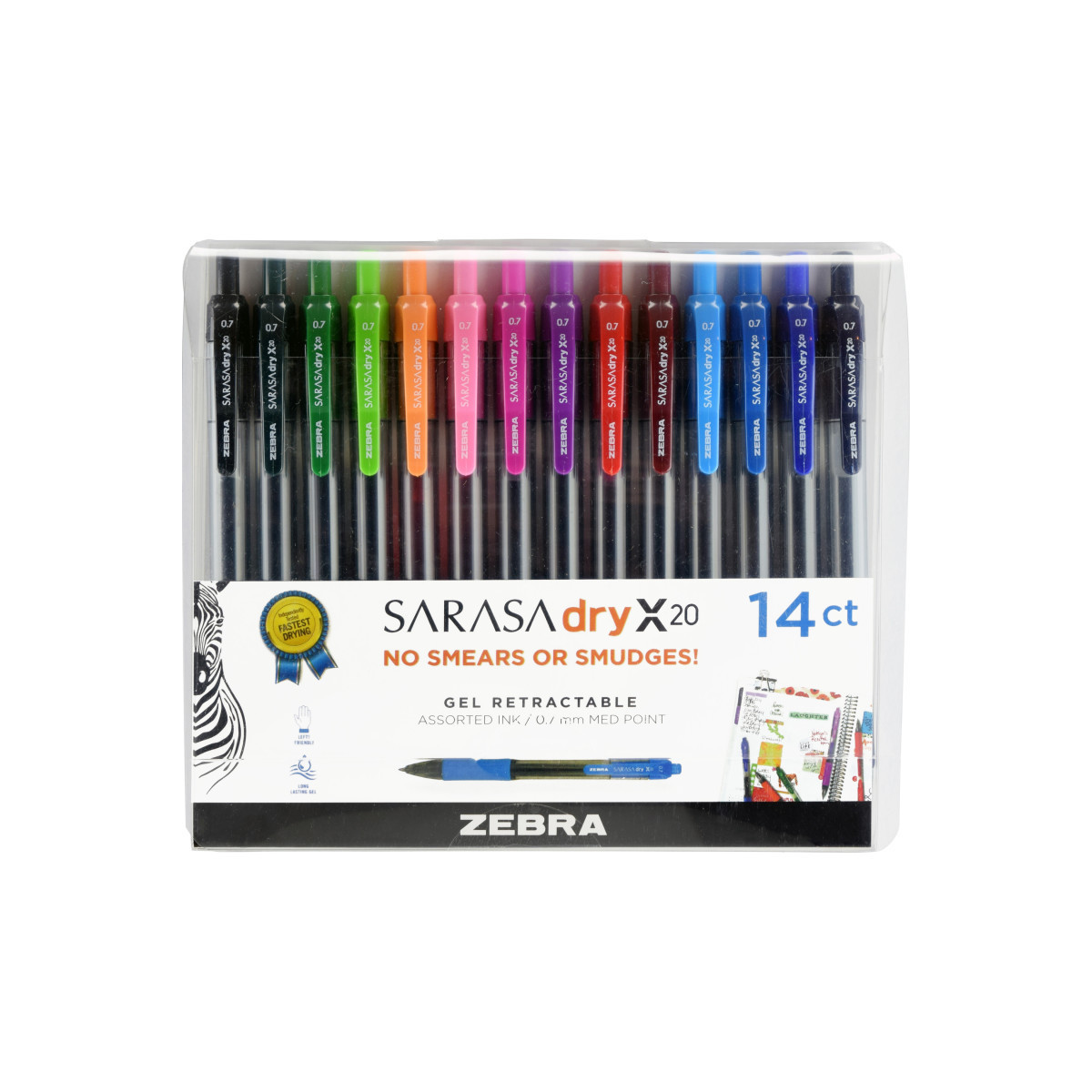 For the expressive creators of the world, the Sarasa gel retractable pen line delivers noticeable color vibrancy and a flowing ink experience couple with Rapid Dry Ink (RDI) technology to promote a most pleasurable and confident creative or writing experience. Dries in less than a second, in an instant on most surfaces! Ideal for the left-handed! Includes 14 pens in Black, Blue, Red, Light Green, Kelly Green, Light Blue, Pink, Violet, Orange, Mahogany, Forest Green, Fuchsia, Navy, and Cobalt.