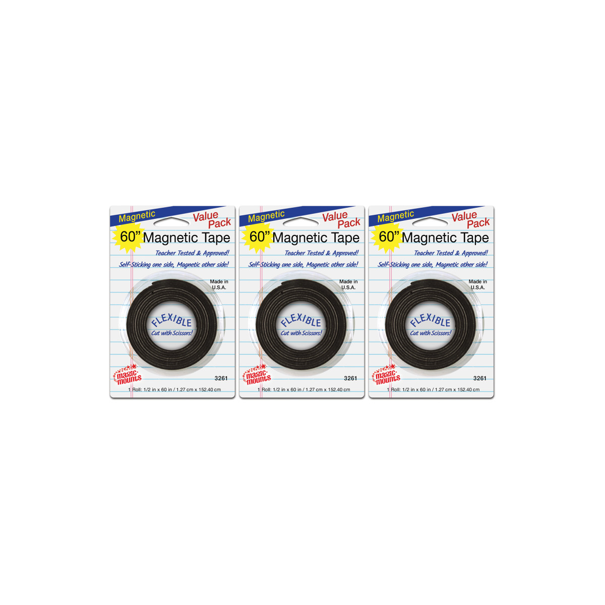 Magnetic tape is a versatile and easy-to-use solution that can be effortlessly cut with a pair of scissors, allowing you to customize the length to suit your specific needs. Unlike traditional adhesive products, it eliminates the hassle of messy glue, making application quick and clean. Once applied, this tape adheres securely to a wide range of metal surfaces, ensuring a strong hold. With magnetic tape, you can transform almost any lightweight object—such as photos, notes, or crafts—into a convenient magnetic item. This makes it an ideal choice for organizing your space, displaying items on metal surfaces, or creating DIY projects. Sold as a pack of 3 rolls.