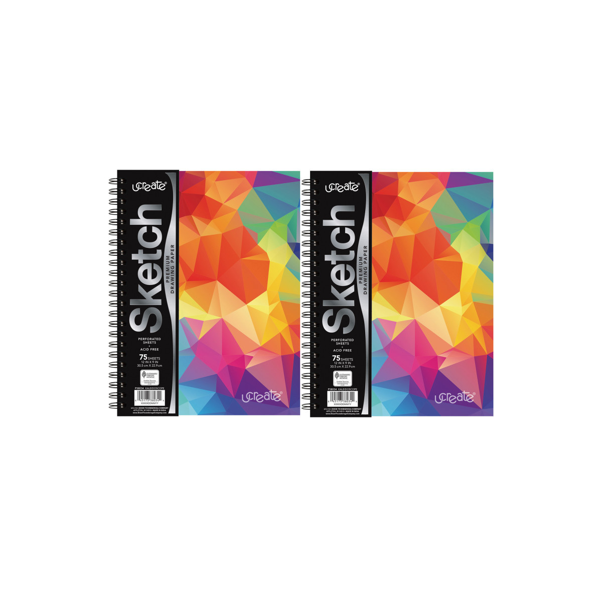 Let your imagination soar with this Kaleidoscope fashion cover sketch book! Premium sketch book with durable front and back poly covers adorned with an on-trend Kaleidoscope design. Each sketch book contains 75 sheets of 120gsm heavyweight, acid-free drawing paper. Measuring 12 x 9 inches, it's easy to take your art and creativity on the go! The spiral binding lies flat for comfortable drawing and sketching. This is the ideal book for sketching and drawing with all types of dry media, such as pencils, colored pencils, pens, and marker art. Sheets are perforated for final art. Perfect school supply for teachers and students. Sold as a pack of 2.