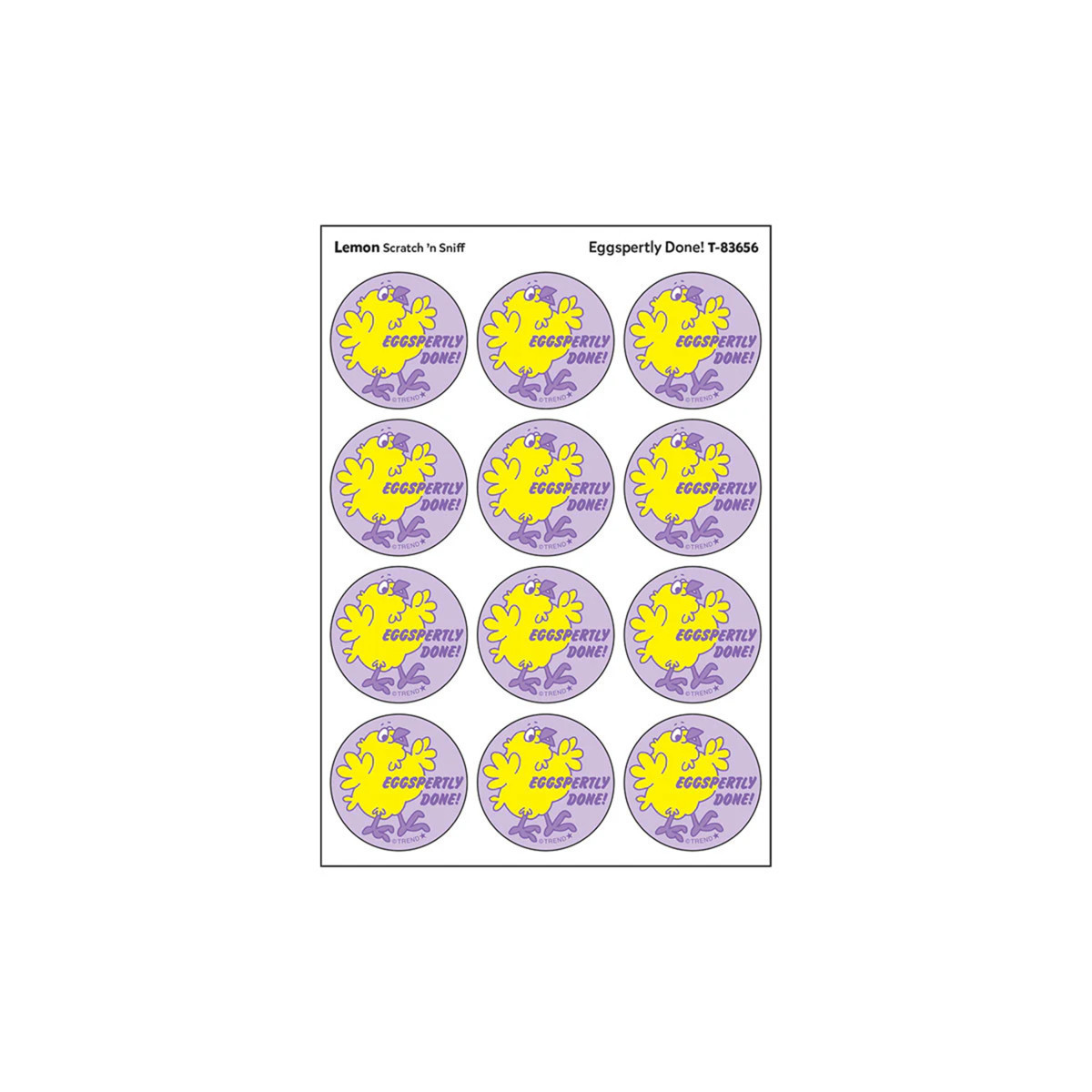Get a whiff of this Eggspertly Done, lemon-scented chick sticker! TREND Scratch n Sniff Stinky Stickers from the 80s are BACK! Fun to collect, trade, and celebrate accomplishments and special occasions. Collectors will be happy to spot the star symbol to distinguish TREND Retro Stinky Stickers from those printed in the 1980s.
