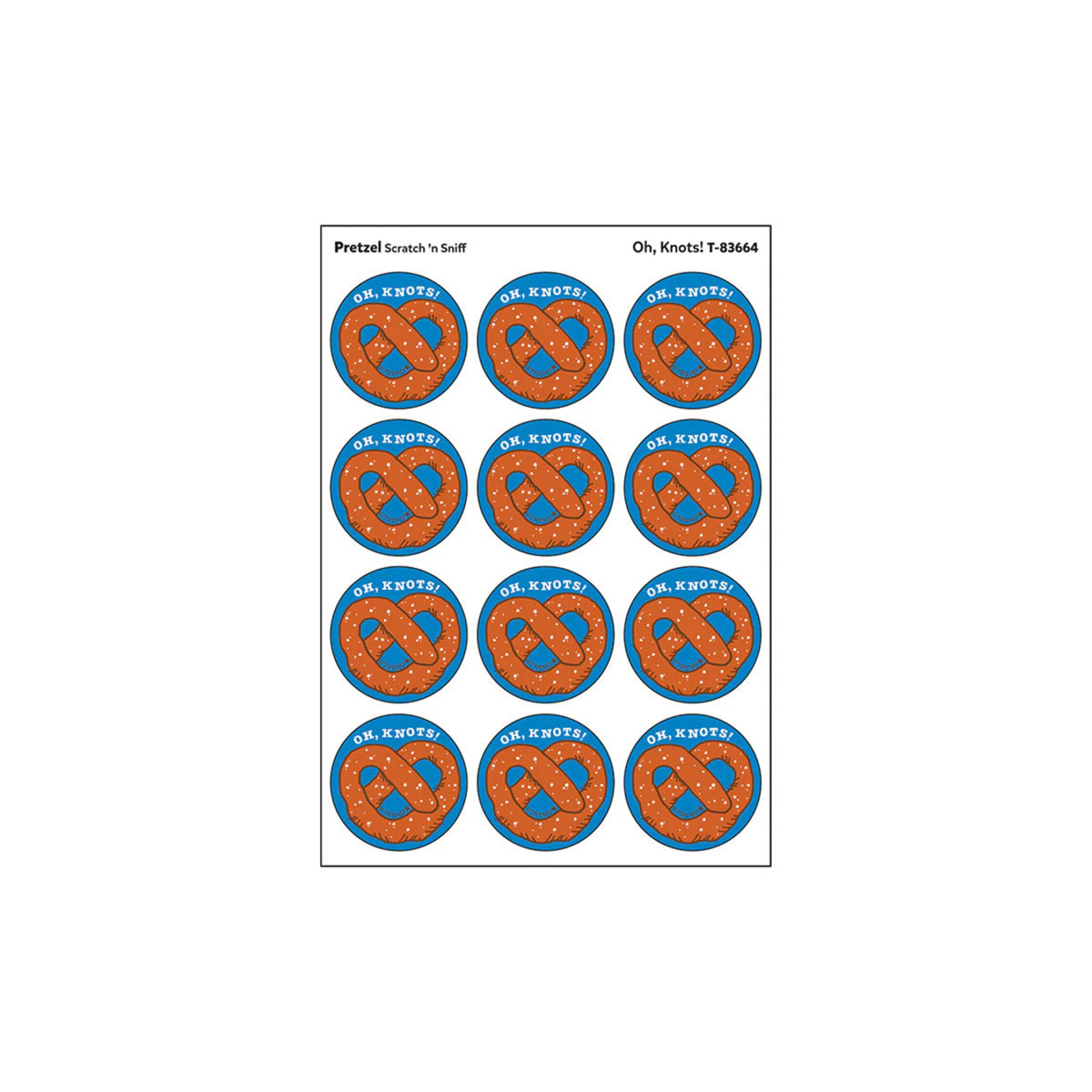 Get a whiff of this Oh, Knots!, pretzel-scented sticker! TREND Scratch 'n Sniff Stinky Stickers from the '80s are BACK! Fun to collect, trade, and celebrate accomplishments and special occasions. Collectors will be happy to spot the star symbol to distinguish TREND Retro Stinky Stickers from those printed in the 1980s.
