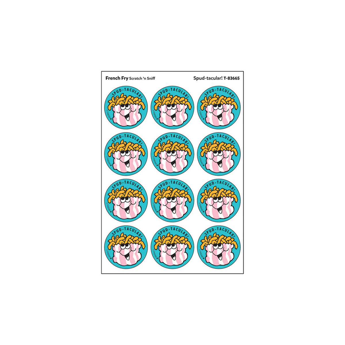 Get a whiff of this Spud-tacular!, french fry-scented sticker! TREND Scratch n Sniff Stinky Stickers from the 80s are BACK! Fun to collect, trade, and celebrate accomplishments and special occasions. Collectors will be happy to spot the star symbol to distinguish TREND Retro Stinky Stickers from those printed in the 1980s.