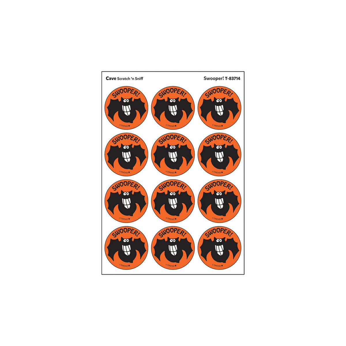 Get a whiff of this Swooper!, cave-scented bat sticker! TREND Scratch 'n Sniff Stinky Stickers from the 80s are BACK! Fun to collect, trade, and celebrate accomplishments and special occasions. Collectors will be happy to spot the star symbol to distinguish TREND Retro Stinky Stickers from those printed in the 1980s.