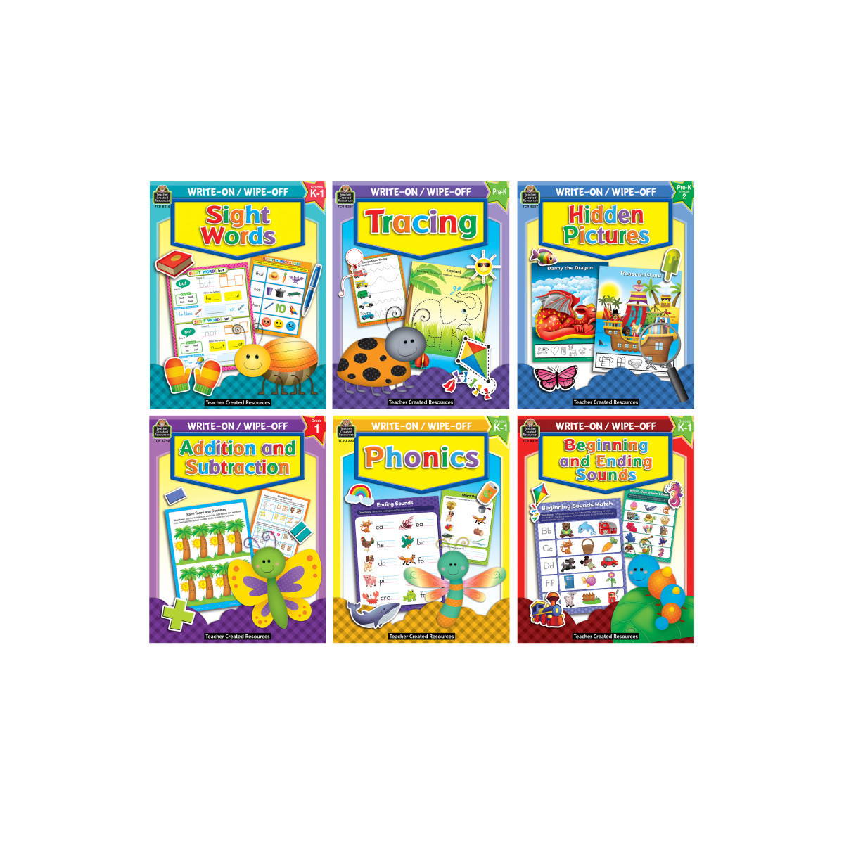 Build a strong foundation in early literacy, math, and fine motor skills with the Early Learning Essentials Write & Wipe Activity Book Kit. This six-book set provides interactive, hands-on practice in phonics, beginning and ending sounds, sight words, tracing, hidden pictures, and addition and subtraction. The write-on/wipe-off format allows children to practice with a dry-erase marker, erase, and repeat for endless learning opportunities. Each book features colorful, engaging activities designed to make skill-building fun while reinforcing key early childhood concepts. Whether used at home or in the classroom, this versatile kit supports independent learning and skill mastery. This versatile and engaging kit is an essential resource for parents and teachers looking to support early education in a fun and interactive way.