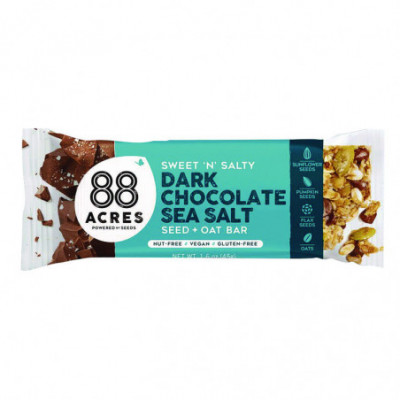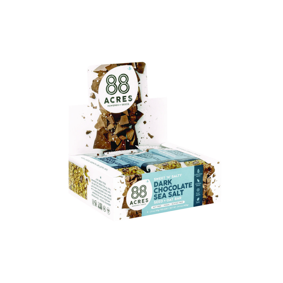 Soft-baked for a chewy texture. The 88 Acres Sweet 'N' Salty seed and oat bar is perfectly balanced with organic chocolate chips and sprinkled with large flakes of Australian sea salt for that taste of homemade chocolate chip cookies.