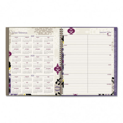 The classic medallion design is given a twist by pairing it with these vibrant colors. Fun, die-cut durable poly cover is great for both work and home. Monthly tabs for reference and quick navigation. Block format: open scheduling. Weekly: one week per two-page spread. Monthly: one month per two-page spread with notes space. Past and future months reference on each monthly page.