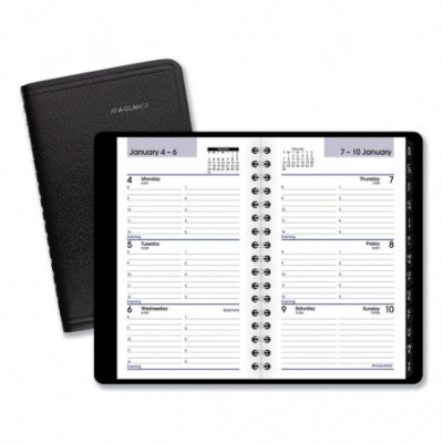 Put your best foot forward and plan your time with this stylish planner. Your plans are set! The high-quality paper features ink bleed resistance. Your life is more than just dates in a planner. Each week lets you plan, set and achieve goals and track important notes. Long-term goals are just as important. Stay ahead of the game with the spacious, tabbed monthly pages. Keep the momentum going with a variety of special pages. A double-sided poly pocket stores loose sheets. Comes with a full set of colorful stickers to highlight important events, emphasize priorities and mark special occasions. Sturdy and stylish! Durable poly cover stands up to wear and tear, while the gold twin wire binding helps prevent snags and keeps pages secure.