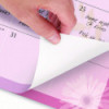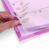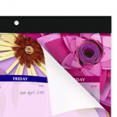Features a new bright floral design each month. Durable backboard provides a sturdy writing surface. One month per page with unruled blocks. Past and future months reference. Black, wide paper headband with eyelets; two clear corners; perforated pages. The paper is colored, providing an attractive backdrop for the fun paper flowers design.