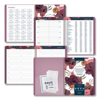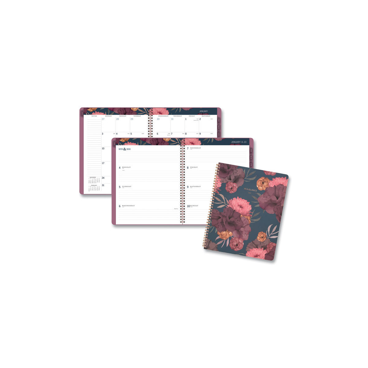 Allow the allure of the Dark Romance Collection to be part of your planning this year. Photographed and then digitally enhanced, the delicate floral bouquets appear to float effortlessly on field of dark blue. Rose gold foil stamping adorns the smooth, velvety covers that are soft to the touch. Covers 13 months from January - January with Julian dates.