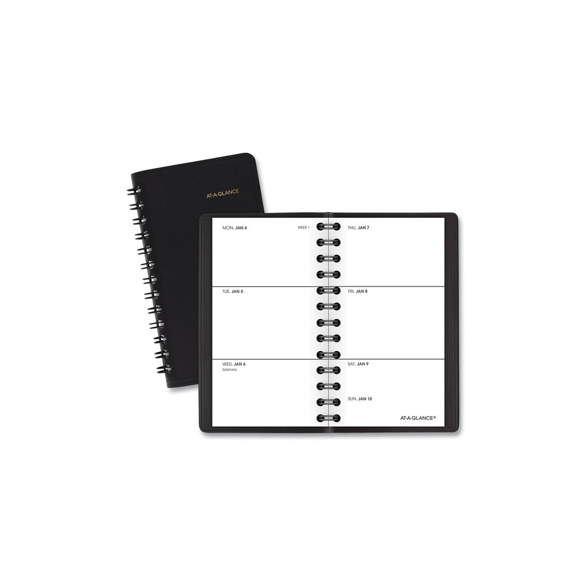 Unruled planner is small enough to fit in your pocket but has large writing blocks. One week per two-page spread; unruled block-style for open scheduling. Weekend spaces are half-size to keep the focus on the work week. Printed on quality paper with superior ink bleed resistance.