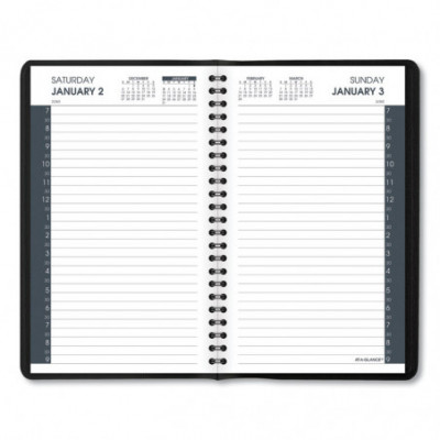 Plan your day in half hour intervals. High-quality paper with superior ink bleed resistance. Equal space for weekdays and weekends. One day per page. Past, current and two future months reference. Comes in military and standard times to fit your personal planning preferences.