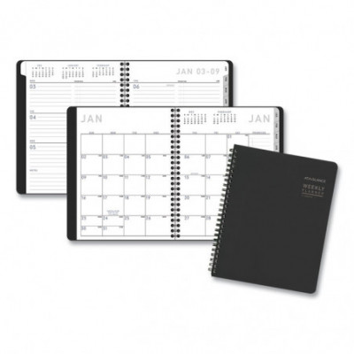 Keep your plans clear and simple. Each tabbed, one month per two-page spread features unruled daily blocks, a priorities section and past/future month reference calendars. The flexible, durable cover features silver-foil accents for a sleek, professional look, and the snag-proof twin-wire binding secures each page firmly in place.
