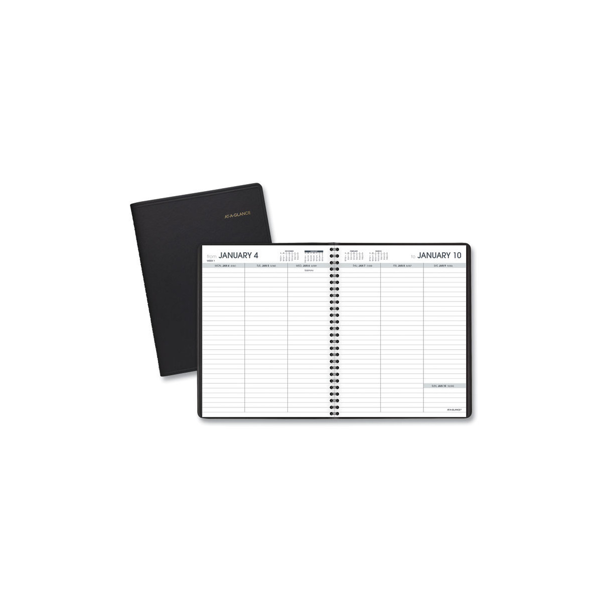 Open scheduling design allows more planning flexibility. One week per two-page spread; ruled columns for open scheduling; past, current and two future months reference. Current month and week are highlighted for easy identification. Printed on high-quality paper with superior ink bleed resistance.