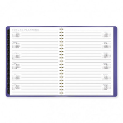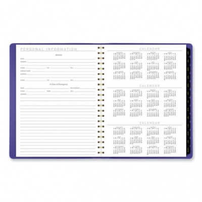 Perfect for long-term planning and staying on track. Weekly section features one week per two-page spreads with space for each day's priorities. Monthly section features tabbed, one month per two-page spreads with unruled daily blocks and a special column for that month's priorities.