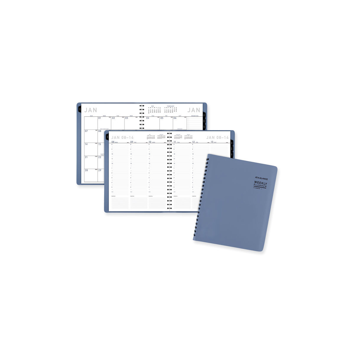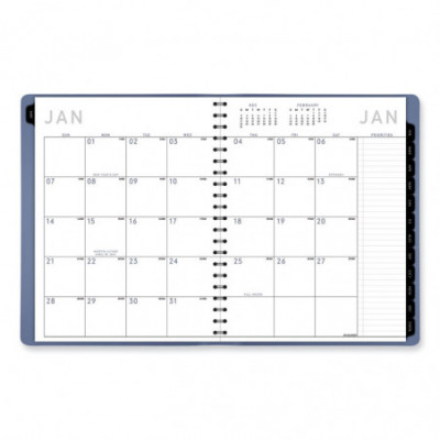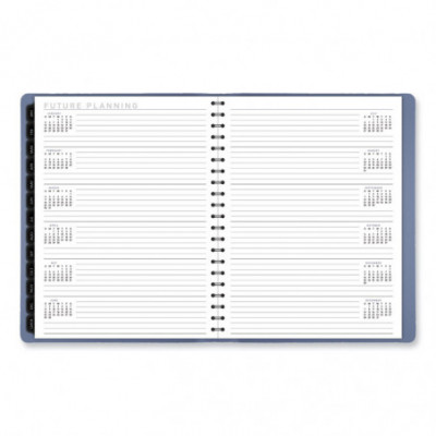 Perfect for long-term planning and staying on track. Weekly section features one week per two-page spreads with space for each day's priorities. Monthly section features tabbed, one month per two-page spreads with unruled daily blocks and a special column for that month's priorities.