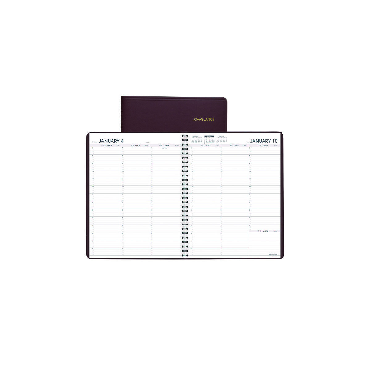 Plan out your week, one day at a time. One week per two-page spreads feature a columnar format and 15-min appointment slots Monday through Saturday for high-precision scheduling. On Sundays you'll find open-scheduling for maximum flexibility. To help you keep the bigger picture in mind, each weekly spread also provides reference calendars along with bold weekly/daily labeling, a weekly count: Week 1 through Week 52 and a daily count: days-past/days-remaining. In the back of the book, additional resources are provided to make your year run more smoothly. Attractive faux leather cover with lay-flat, snag-free twin-wire binding keeps everything together securely. Printed on high-quality paper for superior ink-bleed resistance. Guaranteed to last all year. ACCO Brands will replace any AT-A-GLANCE planner that is returned within one year from the date of purchase. This guarantee does not cover damage due to misuse or abuse.
