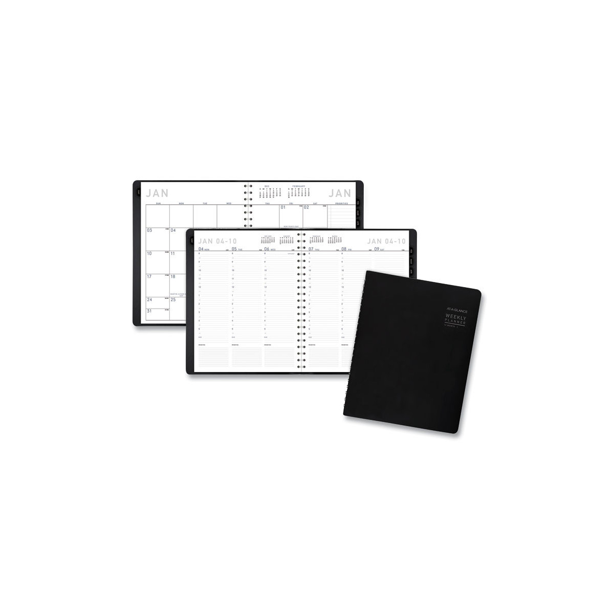 Unique planner features a professional, contemporary design that's perfect for long-term planning and staying on track the whole year through. Two-page per week spreads feature reference calendars, plenty of space for your daily appointments and notes as well as a devoted section for each day's top priorities. Tabbed one-month per two-page spreads feature unruled daily blocks, reference calendars as well as a ruled column for the month's most important goals and tasks. In the back of the book, you'll find space for additional notes, important contact information, future planning and more. All federal holidays are highlighted, and all sections are printed on premium paper to ensure excellent ink-bleed resistance.