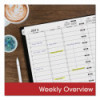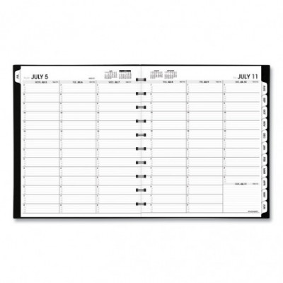 Academic weekly/monthly appointment book covers a 12-month date range from July to June. High-quality paper features superior ink bleed resistance. One week per two-page spread has ruled columns with quarter-hourly appointment times 7:00 am to 8:45 pm on weekdays and from 7:00 am to 5:30 pm on Saturdays. One month per two-page spread has unruled blocks for open planning. Spread includes past, current and future calendar references. Special features include important dates, a 3-year reference calendar, 14 moveable lined notes pages, 4 movable grid pages, 2 movable contact pages and a movable pocket. Planner has twin-wire binding and a bungee closure.