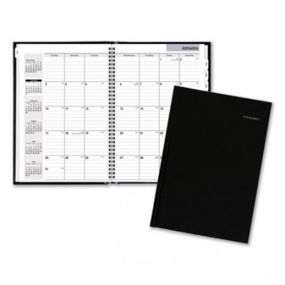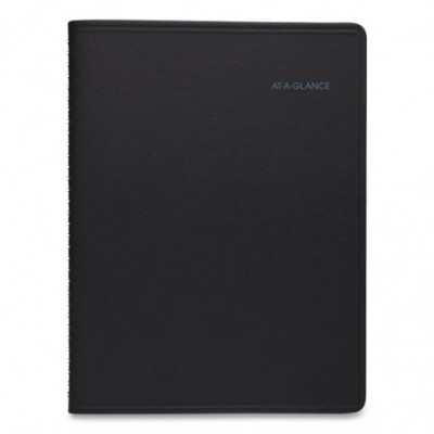Yellow highlighted section for notes and to-do's. Premium paper resists ink bleed. Includes storage pocket. Weekly: one week per two-page spread with QuickNotes® area. Monthly: step-tabbed full month with ruled blocks on left page, QuickNotes® area on right page; two past and six future months reference. Federal holidays highlighted.