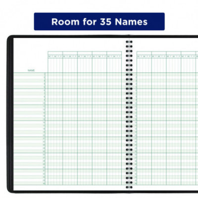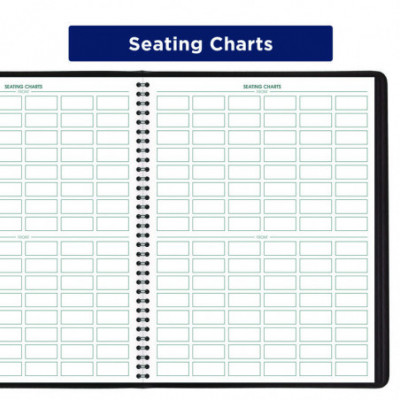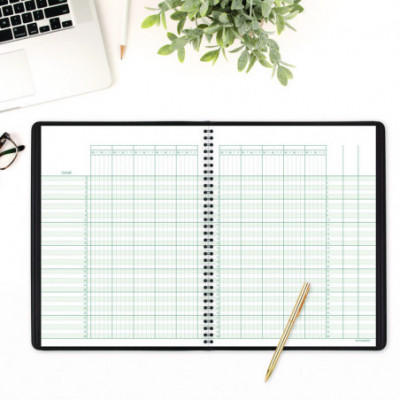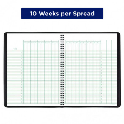 Class record book provides an organized format for teachers to record and review their students' grades. One week per two-page spread includes space to track up to 35 students over 10 weeks. List names in the left hand column, and pencil in records Monday through Friday. Ideal for tracking grades, attendance and more. Record book is undated, with a box to write in week begin and end dates above each of the 10 weekly sections. Seating charts and notes pages also included for convenience. Book is wirebound with classic black cover.