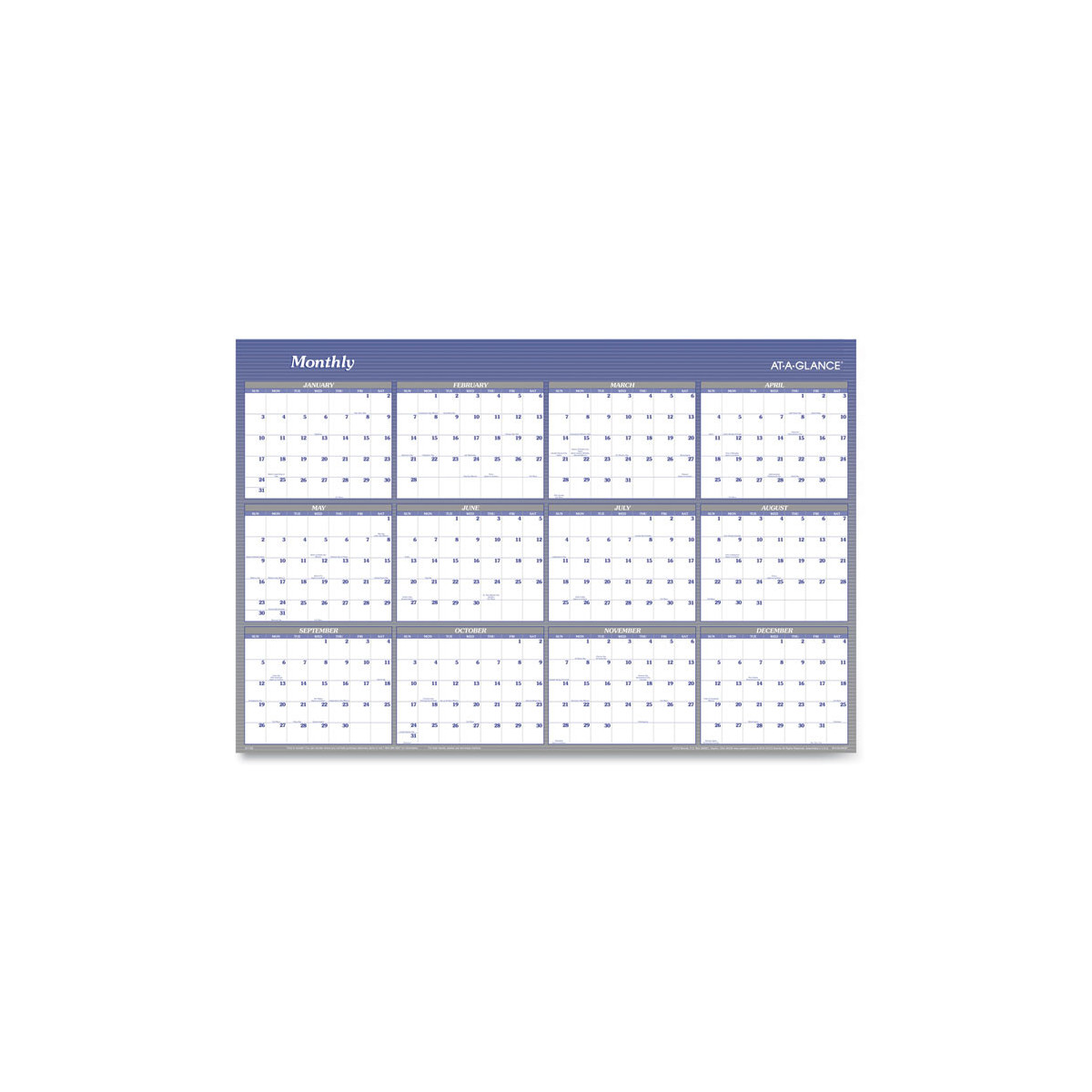 Write, erase and write some more all year long to stay on top of a busy, frequently changing schedule. Reversible: horizontal or vertical annual view. Write-on/wipe-off surface. Wet-erase marker included.