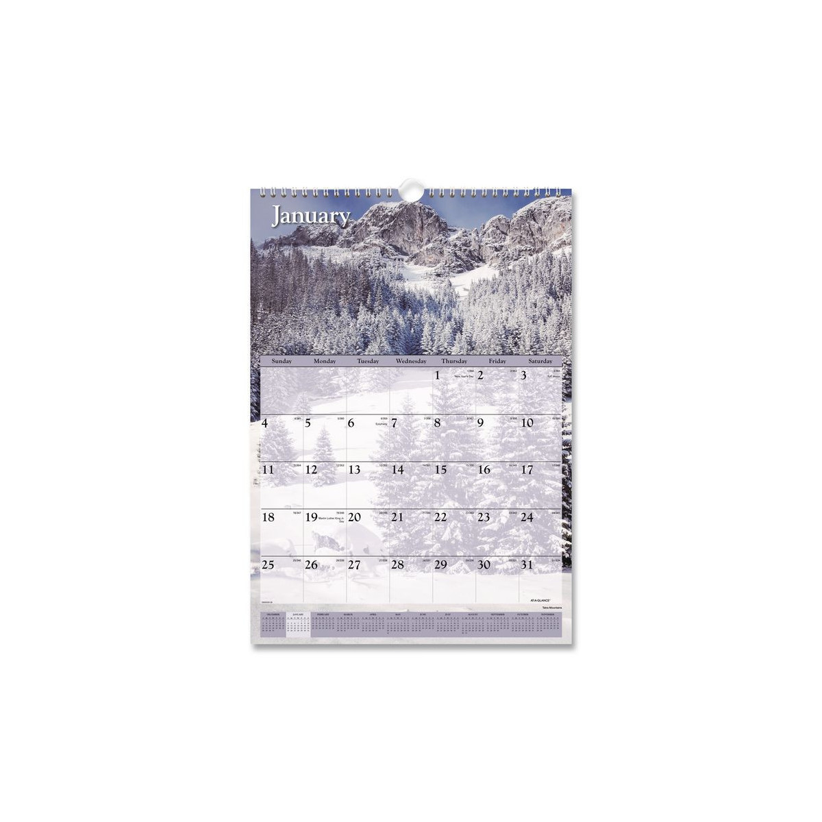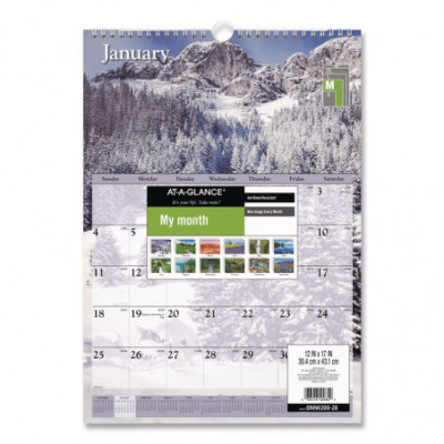 Escape with a stunning scenic image each month. Features full-color photos. One month per page with unruled blocks. Full-year calendar reference; federal holidays highlighted. Bonus page: current year reference calendar. Chipboard backing; white wirebound with hanging loop. Printed on high-quality paper with superior ink bleed resistance.