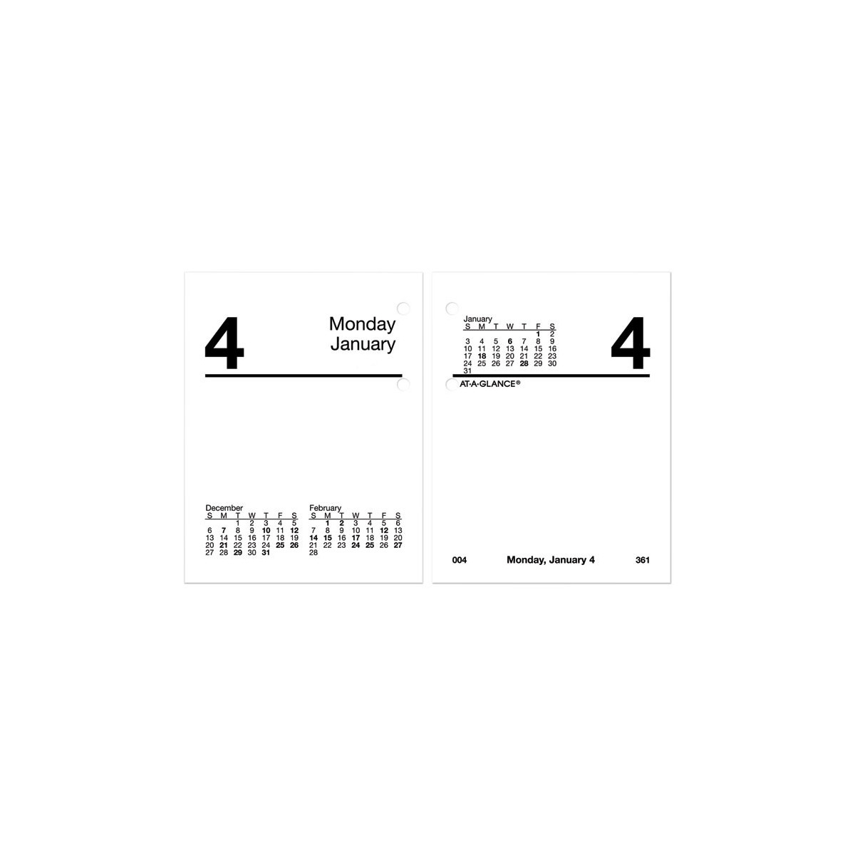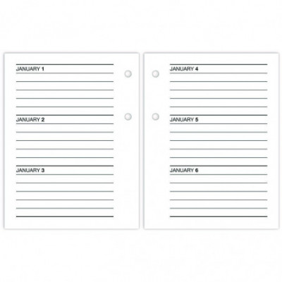 Stay up-to-date for the entire year with this daily refill starting with January and ending with December. Plan ahead for future appointments and events. Calendar features Julian dates. Stay organized with this daily calendar desk refill. If you're in a hurry and need to find an appointment or event quickly, the refill's use of one tab per month allows for easy referencing of dates. Tabs are bright red and printed in white. Daily desk calendar refill set fits 19 Style desk calendar bases with two rings. This item is a calendar page refill set only; base is sold separately.