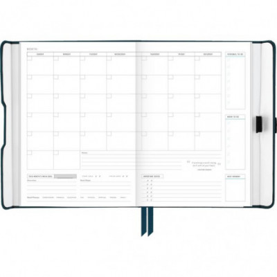 Start broad and gather inspiration for your vision board and mind map to determine your priorities for the year. Then, set specific goals based on your priorities and plan your next steps. Make it all happen by working towards your goals on the undated weekly and monthly planning pages.