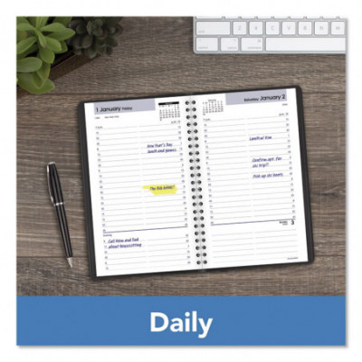 Stay organized between work and home all year long with a daily planner to help you keep track of your busy schedule. Provides easy scheduling and organizing. One weekday per page; current and future months reference. Printed on high-quality, recycled paper containing post-consumer recycled material.