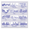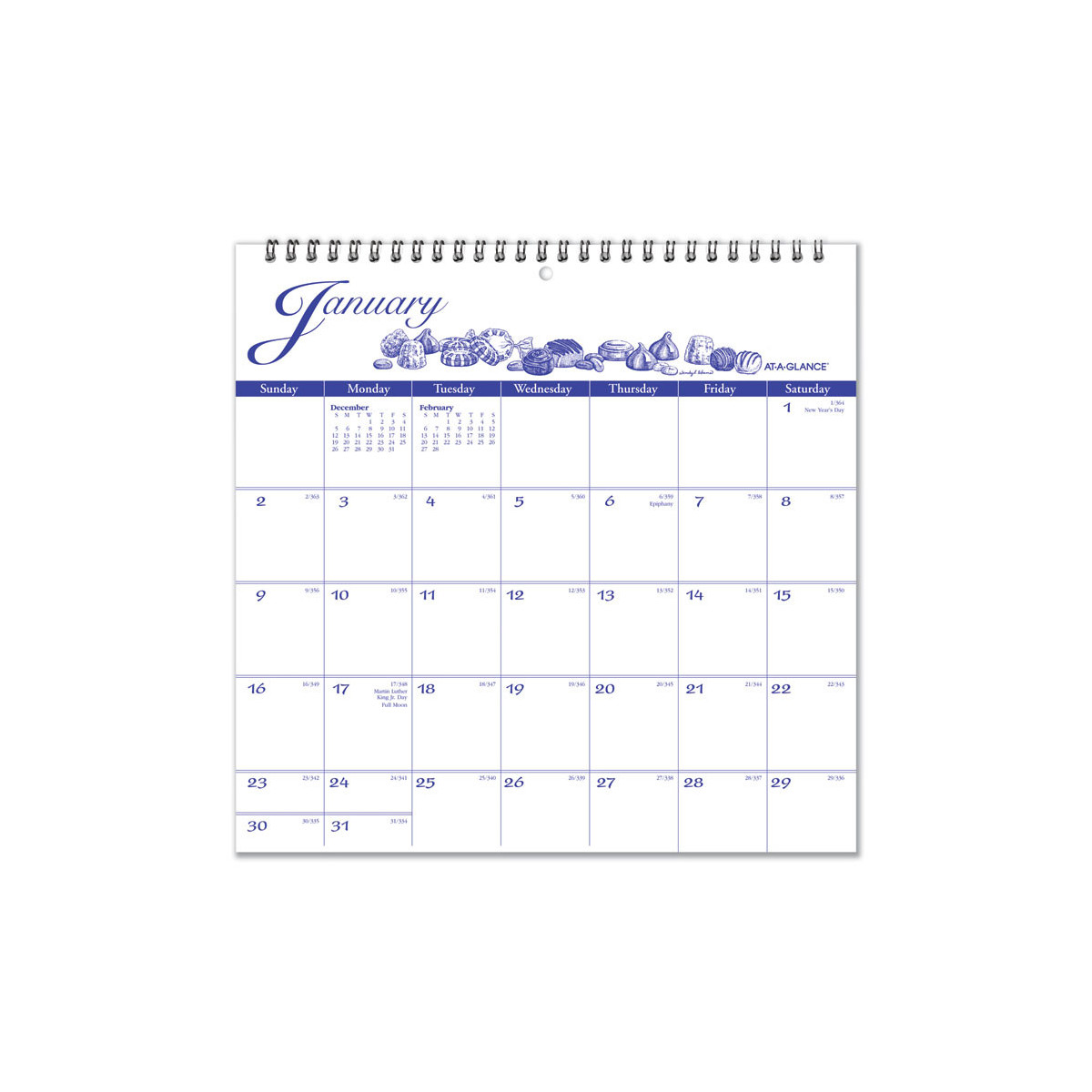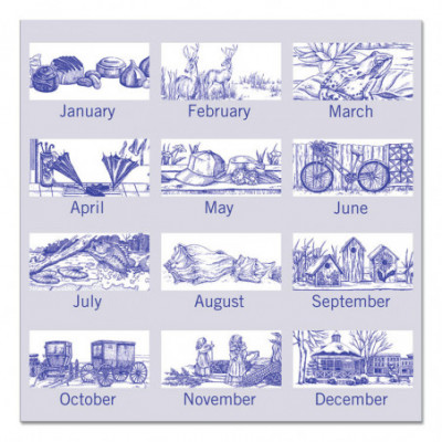 Enjoy a new illustration each month. One month per page with unruled blocks, past and future months reference, and space for notes. Framed with heavyweight gray backboard; wirebound with center hole punch.