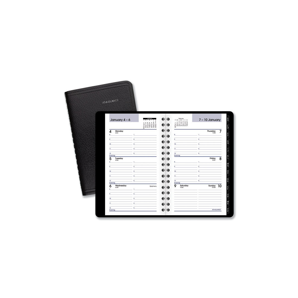 Compact size for your pocket or bag; plan your week with hourly intervals. One week per two-page spread; block-style appointments; current and future months reference. Tabbed telephone/address section. High-quality paper with superior ink bleed resistance.