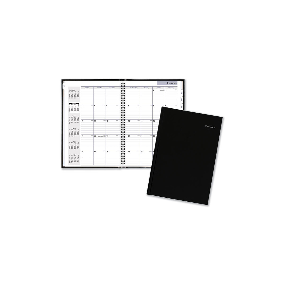Hard cover is great for archiving. One month per two-page spread; past, current and four future months reference. Monthly tabs and storage pocket. Printed on high-quality paper with superior ink bleed resistance. Expand your organizational skills with special pages. Includes travel and expense tracking, personal information, contacts pages, 48 lined notes pages and a double-sided pocket.