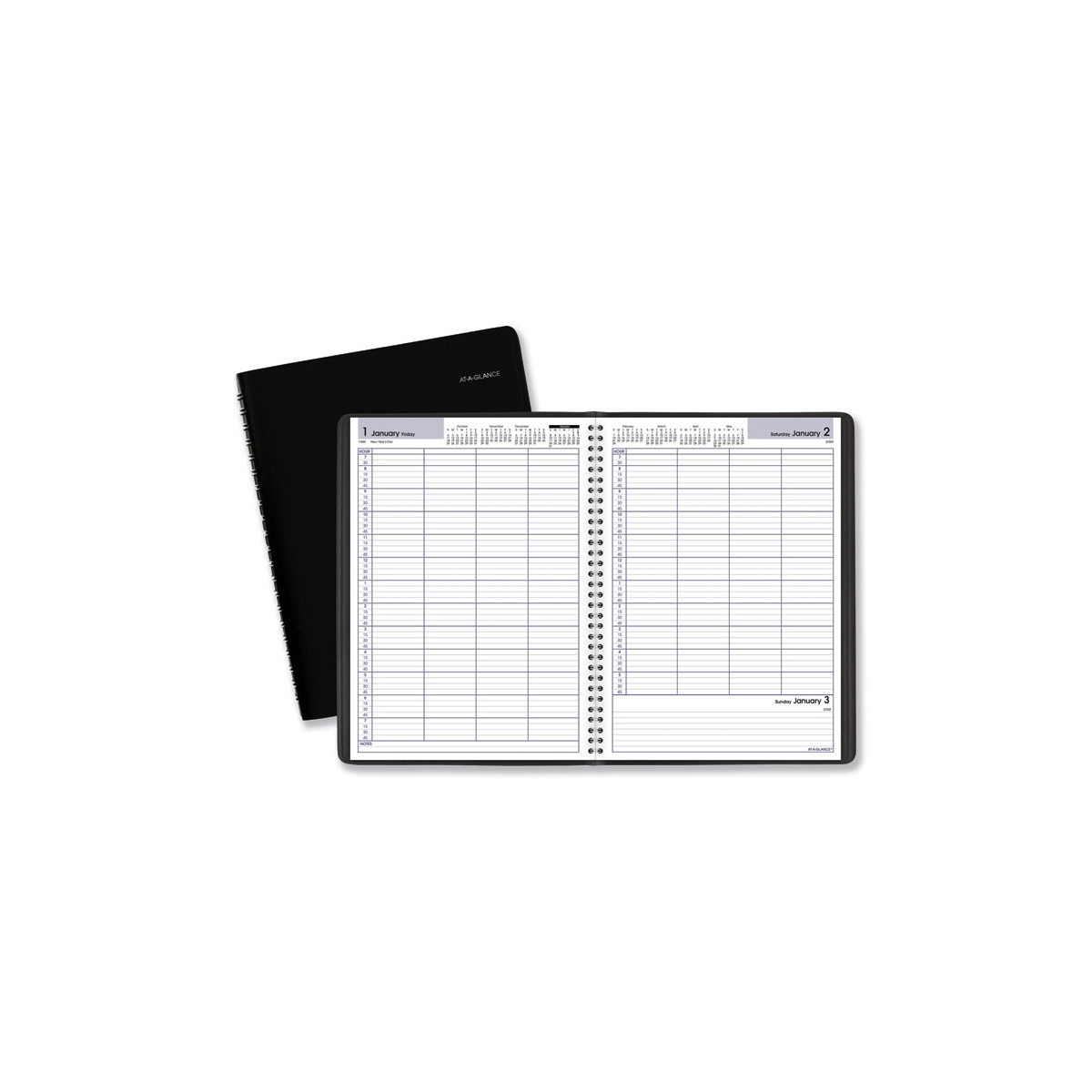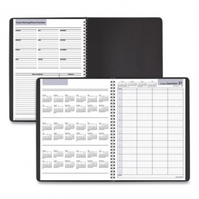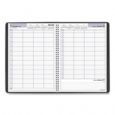Plan schedules for up to four people in one book in quarter-hour increments. One day per page design features a column-style page format. Four columns provide scheduling for up to four people. Three past, the current and four future month reference calendars shown on each spread. High-quality paper with superior ink bleed resistance.