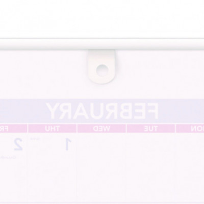 Entire year is displayed on one page with four rows of three months each. Alternating quarters are shaded and federal holidays highlighted in red for clear differentiation. Metal bound at top and bottom with hanging eyelet.