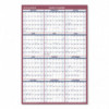 Reversible: horizontal or vertical annual view. Full-year calendar with open blocks featured on both sides. Federal holidays clearly marked in red. Border and print are red and blue with a bright white background. Printed on high-quality, recycled paper containing post-consumer recycled material.